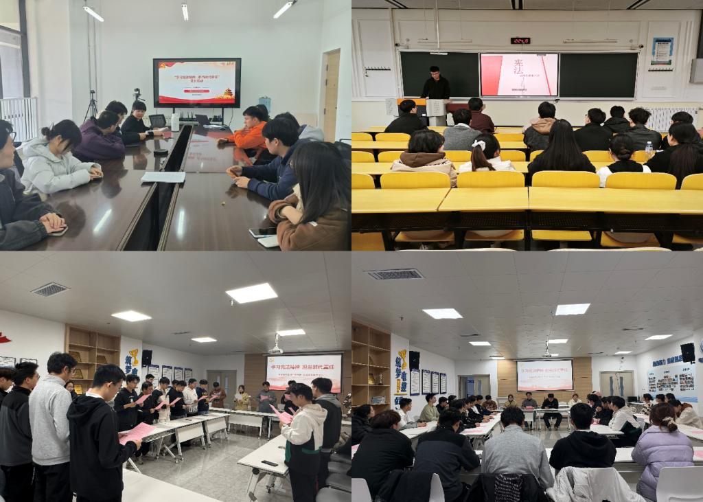 为深入学习贯彻习近平法治思想,弘扬宪法精神,引导学生党员厚植爱国情怀、担当时代重任,近日,我院学生党支部开展了“学习宪法精神,担当时代重任”系列主题党日活动。各支部通过领学解读、观影研讨、晨读宪法等多种形式,教育引导广大学生党员深刻领会宪法要义,以奋发有为的姿态投身“十五五”建设,为法治中国建设贡献青春力量。