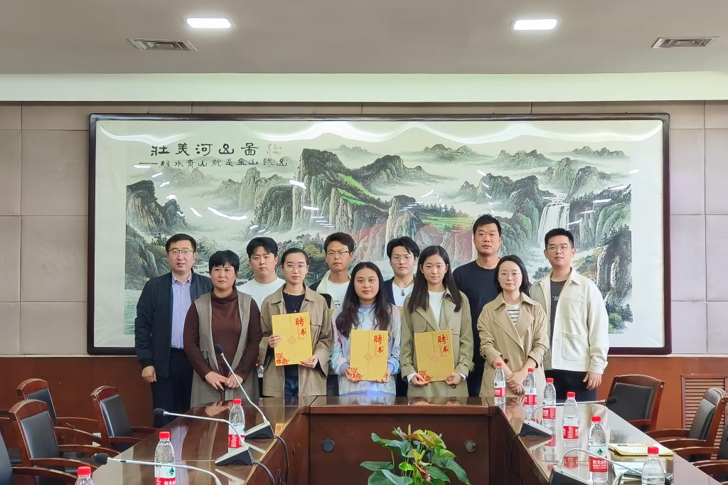 ▲ 与会老师为研究生骨干颁发聘书