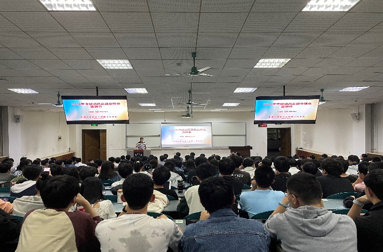 针对2020级本科生,闫茂德以“升学or就业,如何理性选择?”为题做了升学指导和就业动员讲座,从为什么要考研、2024年考研形势、如何选择考研学校与专业、如何考研备考、留学申请和就业择业指导等六个方面进行讲解,希望2020级同学要树立正确的考研观和就业观,并就学生在考研、留学和就业等方面提出的问题给予耐心解答和指导。