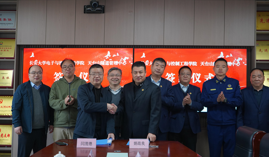 会上,学院与天台山隧道管理中心签署《长安大学校外实习基地建设协议书》,闫茂德、姚战良共同为实习实践教学基地揭牌。