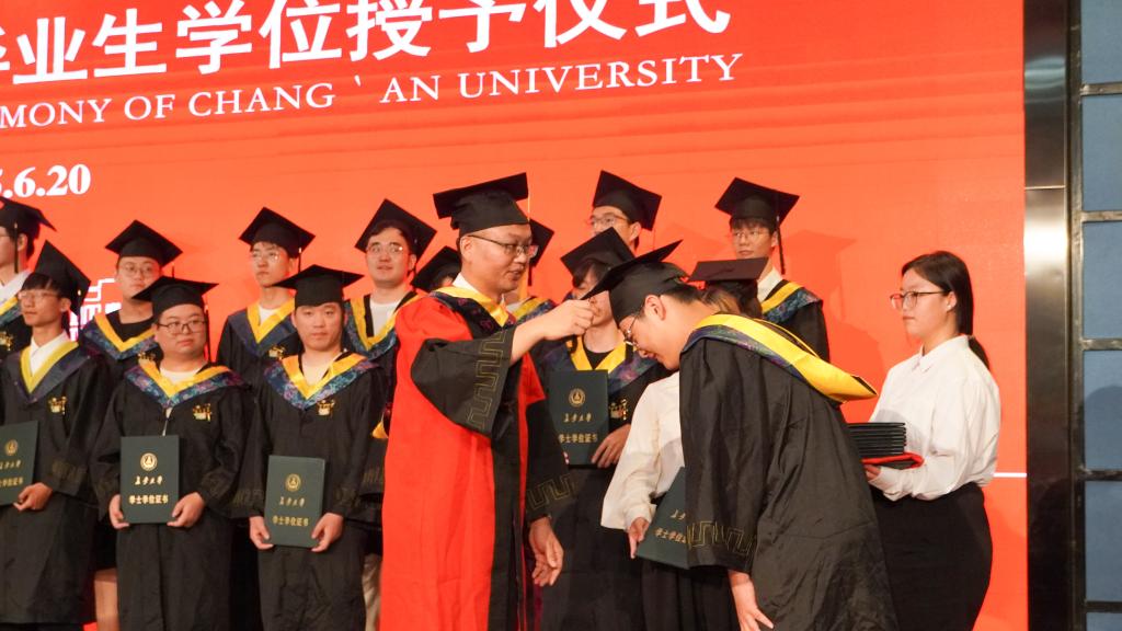 6月20日中午,我院2025届毕业生学位授予仪式在北校区北辰楼会议中心二层报告厅隆重举行。学院党委书记贺炳彦,院长闫茂德,院党委副书记、副院长、纪委书记李勉,副院长龚贤武、路庆昌、惠飞,各系部(中心)主任、教师代表、全体辅导员、2025届毕业生参加了仪式。仪式由学院党委副书记高婷婷主持。